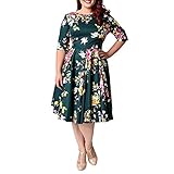 ZAFUL Mujer Vintage Vestido de Fiesta años 50 Impresión De Flores Elegante Vestidos Mangas Medias para Boda Navidad Dress Grande 7XL