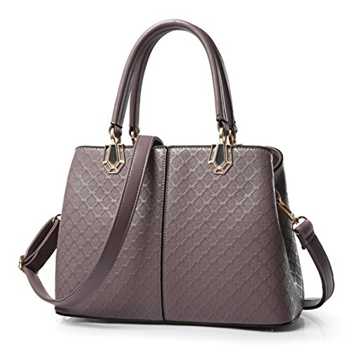 Wewod Las Mujer Bolsos al Hombro Bandolera de PU Cuero Bolsa de Mensajero ,Patrón de parrilla,Trabajo,Fiesta 29 x 22 x 12.5 cm (L*H*W) (Púrpura)
