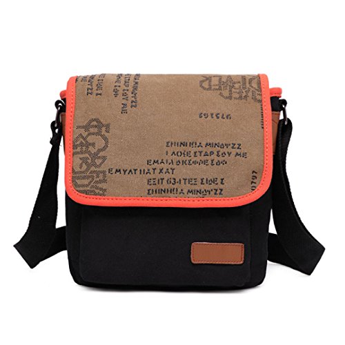 Wewod Bolsos Hombres Bandolera de Ocio Lona de Vendimia Bolso de Hombro Inclinado Bolso de Hombro Viaje de Mensajero Maletín (Negro)