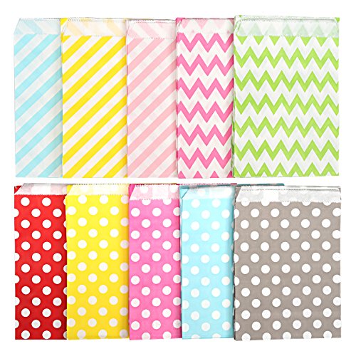 Kesoto 100 Bolsas de Papel para Caramelos Bolsas de Papel para Regalos de Diferentes Colores e Diferentes Patrones, Olas, Punto y Rayas diagonales (Colores aleatorios)